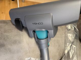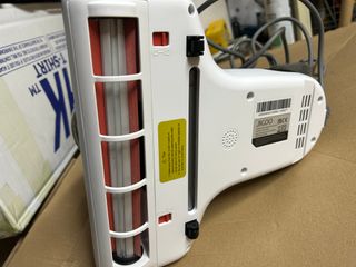 Aspirador de ácaros Jigoo J200. PVP en amzon 109.99 euros. - Diseño blanco. - Incluye rodillo. - Etiqueta de advertencia de seguridad.