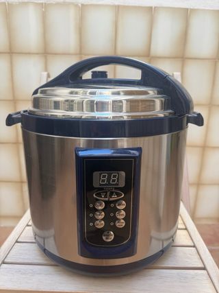 Olla programable prácticamente nueva. Ideal para cocinar fácilmente y de forma saludable. - Capacidad para 6 litros. - Programación de hasta 24 horas. - Función de mantener caliente.