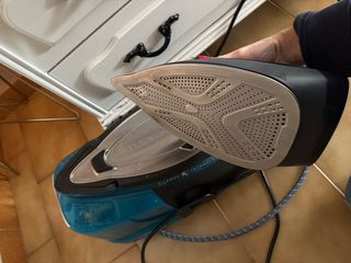 Centro de planchado Rowenta Silence Steam Pro en color negro y detalles azules. la plancha va y tiene fuerza la tengo dos años se me ha acabado la garantía. NO VA EL VAPOR, por lo demás si plancha y calienta y todo pero cuando llevas un poco planchando deja de ir el vapor. por eso el precio. - Panel de control con modos ECO, Normal y Boost 15 min. - Botón de encendido/apagado iluminado.