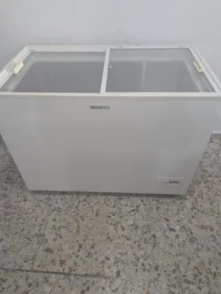 Arcón congelador Beko con tapa corredera de cristal. - Diseño moderno y funcional. - Tapa de cristal para fácil visualización. - Ideal para comercios o uso doméstico. Venta solo en persona, por mi localidad, 11540 y dinero en metálico. Para más información de envío, preguntar vía WhatsApp o teléfono.