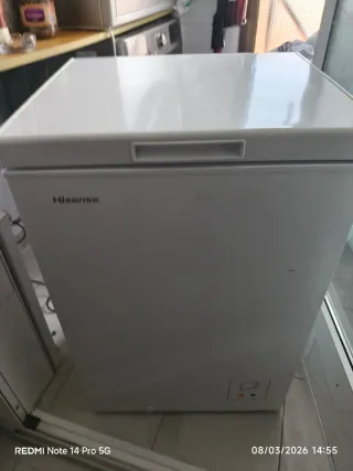 Arcón congelador de la marca Hisense. Ideal para almacenar alimentos congelados. - Color blanco. - Diseño moderno y funcional. - Tirador integrado para fácil apertura.