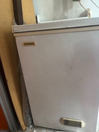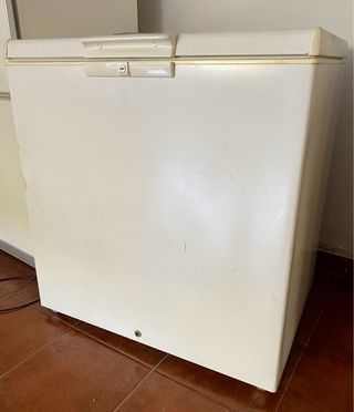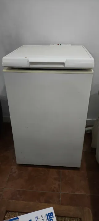 Congelador tipo arcón en buen estado. - Medidas compactas, ideal para espacios reducidos. - Color blanco. - Asa de apertura integrada.