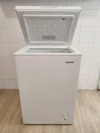 Congelador arcón independiente de 99 litros de capacidad. Es convertible, lo que permite adaptarlo a tus necesidades. - Diseño blanco. - Incluye cesta interior. - Termostato regulable. * Compresor inverter. Diseñado con un compresor inverter inteligente, este congelador ahorra energía al ajustar dinámicamente la potencia de refrigeración según tus necesidades. * Conversión a congelador/refrigerador. congelador puede cambiarse fácilmente a modo refrigeración. Muy poco uso (2 meses). Venta por mudanza. Disponible hasta 10 de marzo.