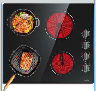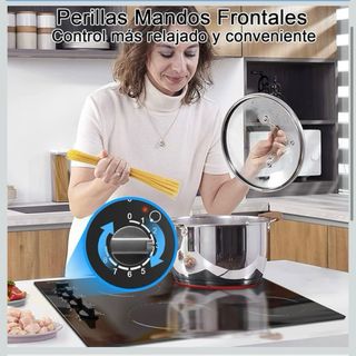 Placa vitrocerámica Hobsir de 59cm con cuatro zonas de cocción. - Diseño moderno en cristal negro. - Controles táctiles intuitivos. - Indicadores luminosos de calor residual.