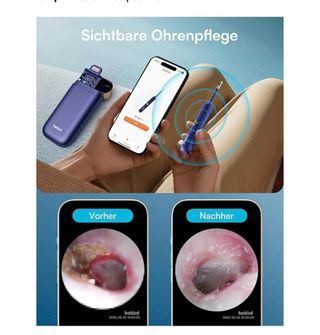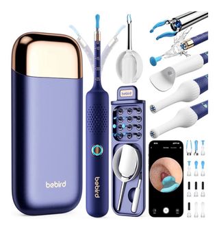 Otoscopio digital B-Sight con cámara para una limpieza de oídos más precisa. Incluye varios accesorios. - Diseño ergonómico en color azul y dorado. - Estuche de carga y almacenamiento. - Múltiples puntas de limpieza. - Conexión WiFi para visualización en móvil.