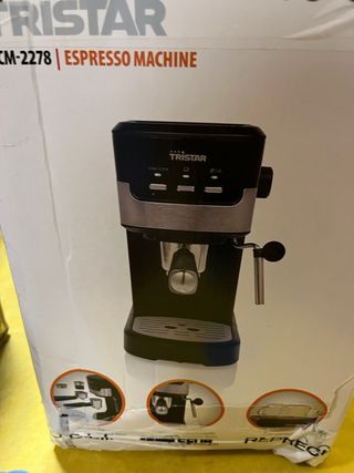 Cafetera espresso Tristar. - Color negro y detalles plateados. - Panel de control con botones. - Vaporizador para leche.