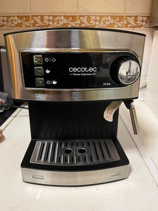 Cafetera espresso de la marca Cecotec, modelo Power Espresso 20. Diseñada para un intenso sabor a café. - Acabado en acero inoxidable. - Presión de 20 Bar. - Incluye vaporizador para leche cremosa.
