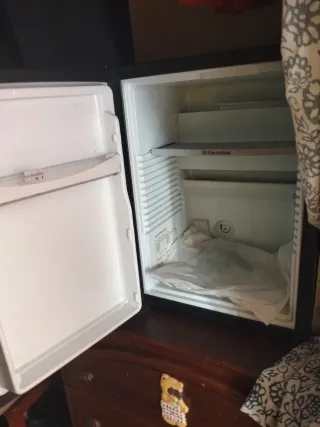 Nevera tipo minibar de la marca Electrolux. Ideal para espacios reducidos. - Color negro. - Diseño compacto.