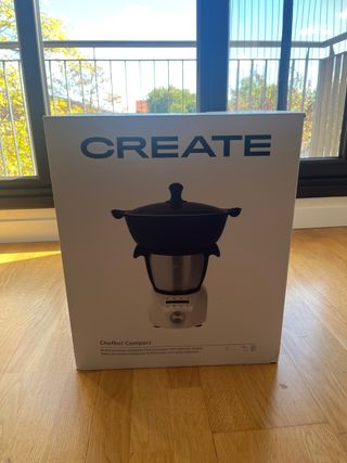 Robot de cocina multifuncional Chefbot Compact de la marca CREATE. Diseñado para facilitar la preparación de alimentos. - Incluye cesta para cocinar al vapor. - Modelo compacto y versátil.