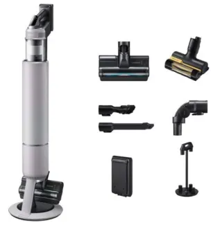 Aspiradora Samsung Jet Lite VS80F28DLP/WA en color blanco y gris. Incluye varios accesorios para una limpieza completa. Samsung Bespoke AI Jet Lite 280W Potencia inteligente Disfruta de una limpieza inteligente, eficiente y sin esfuerzo. Es ligero y potente, con una fuerza de succión de hasta 280W. El modo Limpieza IA 2.0 ajusta automáticamente el rendimiento a diferentes tipos de suelo, y el sistema de filtración HEPA reduce la cantidad de polvo fino liberado al aire. Rendimiento de Limpieza Avanzado Limpia el suelo de forma eficaz y sin esfuerzo, con un diseño ligero y poderoso. Wifi. Aviso de llamada. Detección de suelo. Vacia