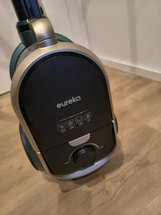 Aspiradora de trineo Eureka Apollo con una capacidad de 2 litros. - Modelo sin bolsa. - Potencia de 800W. - Diseño en color azul y plateado. - 72 decibelios. - Rebobinado automático del cable. - Barra telescópica ajustable. - Complemento para rincones de dificil acceso. Muy poco usado, la dejamos de usar tras comprar una aspiradora robot.