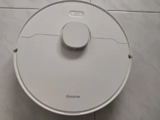 Robot aspirador de la marca Dreame en color blanco. Diseñado para la limpieza automática y fregado de suelos. Programable, vaciado automático, gran capacidad de bolsa Se entrega con repuestos Perfecto estado y funcionamiento - Diseño circular. - Acabado mate.
