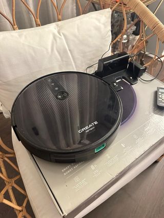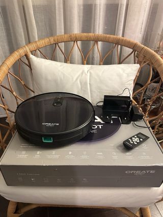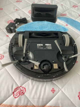 Robot aspirador en muy buen estado. Aspira, barre y friega automáticamente. Potente succión, navegación inteligente y control por app y Wi-Fi. Compatible con Alexa y Google Home. Ideal para todo tipo de suelos. Incluye base de carga y accesorios.