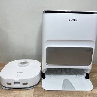 Aspiradora robot de la marca Eureka. - Diseño moderno en color blanco. - Base de carga y vaciado automático. - Indicador de depósito de polvo.