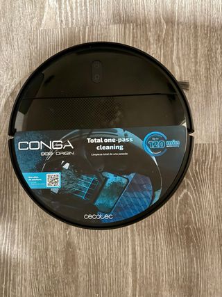 robot aspirador Cecotec Conga Serie 1090 Connected, en perfecto funcionamiento. Es un robot 4 en 1 que barre, aspira, pasa la mopa y friega en una sola pasada. Se controla fácilmente desde el móvil mediante la app Conga, o por asistentes de voz como Alexa y Google Home. Sistema de limpieza Total One-Pass: limpieza completa en una sola pasada • Autonomía: hasta 120 minutos • Conectividad WiFi • Control mediante App Conga (iOS y Android) • Compatible con Alexa y Google Home • Modos de limpieza inteligentes (automático, bordes, manual, etc.) • Depósito mixto para sólidos y líquidos