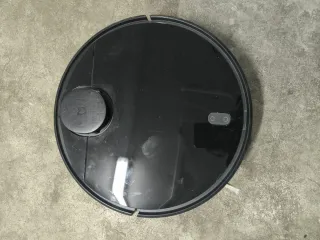 Robot aspirador de la marca Xiaomi en color negro. Diseñado para la limpieza aspiración y fregado automática de suelos. - Diseño circular. - Superficie superior lisa. - Botones de control integrados.