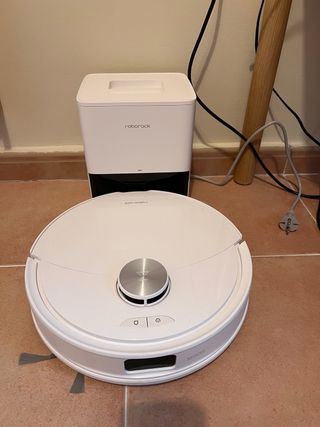 Robot aspirador Roborock Q10 S5+ en color blanco. Incluye su base de autovaciado. - Diseño moderno y elegante. - Base de carga y vaciado automático.