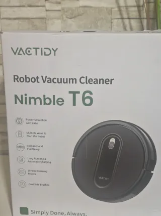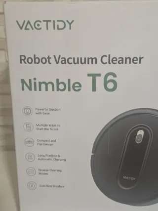 Robot aspirador Vactidy Nimble T6, diseñado para una limpieza eficiente. - Potente succión. - Múltiples formas de inicio. - Diseño compacto y plano. - Larga autonomía y carga automática. - Diversos modos de limpieza. - Doble cepillo lateral.