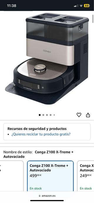 Robot aspirador Cecotec Conga 8290 – Con base de autovaciado Se vende robot aspirador Cecotec Conga 8290 Immortal Ultra Power Home X-Treme en muy buen estado. Ideal para mantener la casa limpia sin esfuerzo. 🔹 Incluye base de autovaciado, por lo que el robot se vacía automáticamente. 🔹 Función aspirado y fregado. 🔹 Gran potencia de succión para alfombras y suelos duros. 🔹 Navegación inteligente con sensor láser para mapear la casa. 🔹 Control desde app móvil y programación de limpieza. 🔹 Batería de 5200 mAh con gran autonomía. Funciona perfectamente. Se vende por no usar.