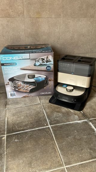 Robot aspirador Conga 1790 Ultra, diseñado para una limpieza eficiente. - Tecnología 4 en 1: aspira, friega, barre y pasa la mopa. - Navegación inteligente iTech SmartGyro 3.0. - Control total desde tu smartphone con la App Control. - Función Total Surface para recarga y reanudación automática. La cambio por que me han regalado una nueva. La batería dura menos pero funciona perfectamente. Entrego con mopa y cepillo de mascotas sin estrenar.