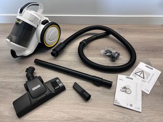 Aspiradora de trineo con diseño moderno y compacto. - Depósito transparente. - Tubo telescópico. - Manguera flexible. Tecnología ciclónica moderna sin bolsa Diseño compacto y muy manejable gracias al asa Gran radio de acción de 7 m gracias al cable de 5 m y al tubo de aspiración extralargo El depósito de polvo se vacía fácilmente con solo pulsar un botón Muy manejable gracias a las ruedas de deslizamiento suave recubiertas de goma que no dañan el suelo Encendido/apagado y recogecable automático mediante un interruptor de pie, y se guarda ocupando poco espacio gracias a su práctico sistema parking Desmontaje sin herramientas