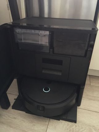Robot aspirador de la marca Roborock en color negro. Diseñado para la limpieza del hogar. Robot aspirador Revo estación de vaciado automático moderno, usado siempre con agua destilada friega el suelo está en perfectas condiciones aspira y friega auto, vaciado automático - Modelo: Revo. - Color: Negro.