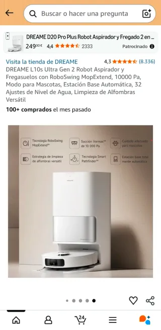 DREAME L20 Ultra Robot Aspirador con Base de Autovaciado 🤖✨ – Como NUEVO Vendo Dreame L20 Ultra, robot aspirador y friegasuelos premium con estación totalmente automática: autovaciado, lavado y secado de mopas, llenado de agua y detergente. ✅ Potencia de succión hasta 7.000 Pa ✅ Navegación láser + IA con detección de obstáculos ✅ MopExtend para limpieza profunda de bordes ✅ Retira mopas en alfombras Completo, detergente sellado y funciona perfectamente. Ideal para suelos de baldosa, madera y vinilo. 🚚 Entrega en mano o envío ❗️No lo puedo enviar por InPost (supera las dimensiones)
