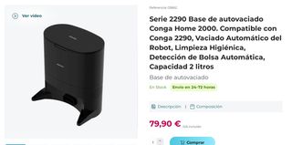 Base de autovaciado Conga Home 2000, compatible con Conga serie 2000. Sin utilizar. Incluye dos bolsas de recambio. Sistema automático de vaciado del depósito del robot aspirador. Fácil y eficiente limpieza.