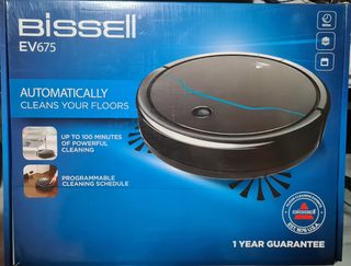 Aspiradora robot Bissell EV675, ideal para mantener tus suelos limpios automáticamente. - Hasta 100 minutos de limpieza potente. - Programable para un horario de limpieza. Casi nuevo.