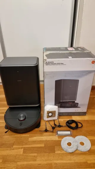 Robot Aspirador Xiaomi Vacuum X20 Max Aspirador robot muy potente (8000 Pa) con navegación láser inteligente 🗺️. Aspira y friega 🔹 Estación de autovaciado 🔹 Fregado automático 🔹 Control desde el móvil 📱 🔹 Compatible con Alexa y Google COMO NUEVO, SIN GARANTIA Extras: - 4 bolsas de vaciado de polvo - Cepillo limpieza nuevo colocado - 4 mopas nuevas - 4 cepillos laterales