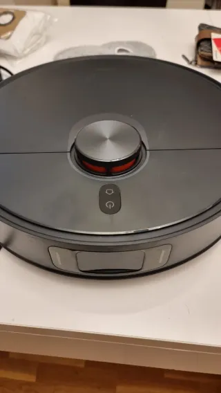 Robot aspirador + fregado autónomo. Base con autovaciado en 10s, lavado y secado automático de mopas. Depósitos 4L agua limpia/sucia y 2,5L polvo (hasta 75 días). ✨ Características: • 6000 Pa de succión potente • Mopas giratorias 180 rpm • Navegación láser LDS 360° • Elevación automática de mopas • 140 min autonomía • App Xiaomi Home + Alexa/Google INCLUYE recambios nuevos que se ven en la foto + cepillo nuevo instalado. Tiene una grieta en la rueda de delante que no afecta a su funcionamiento (ver foto) provocada por el desmontaje de la ruedecita negra para limpiar el rodamiento. El repuesto vale 7€. No acepto ofertas.