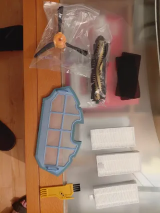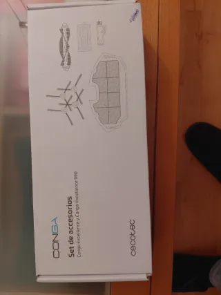Lote de repuestos para robot aspirador Conga Cecotec 990. - Cepillo central. - Cepillos laterales. - Filtros. - Baterías. - Ruedas. - Módulo de aspiración. - Módulo de fregado. - Mando a distancia. - Base de carga.
