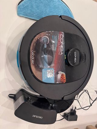 Aspiradora robot Conga 6090 Cecotec, prácticamente nueva. - Incluye varios accesorios para una limpieza completa. - Diseño elegante y moderno en color negro. - Perfecta para mantener tu hogar limpio. TIENE LA TAPA del SOPORTE DEL CEPILLO CON UNA PESTAÑA ROTA. ( se muestra en foto )Esta pegado y funciona perfectmante. El repuesto cuesta enAmazon 19.50 euros