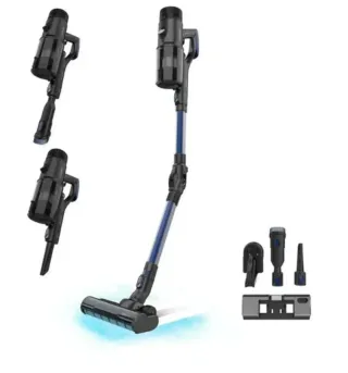Aspiradora Conga Rockstar en color azul y negro. - Depósito extraíble. - Tubo telescópico. - Incluye accesorio para suelos duros y alfombras.
