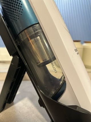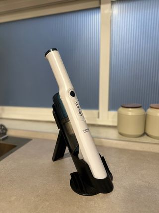 Aspirador de mano Taurus Liberty en color blanco y azul. Incluye su base de carga. - Diseño ligero y ergonómico. - Ideal para limpiezas rápidas.