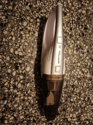 Aspirador de mano de Pekkel que vino con escoba pero ese parte se ha roto,incluso perdí el cable para cargar ,pero la aspiradora funciona bien. - Color plateado y negro. - Depósito transparente. - Botones de control en la parte superior.