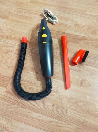 Aspirador de mano para coche, en buen estado. Incluye: - 1 aspiradora de mano. - 1 tubo flexible. - 1 boquilla. - 1 cepillo.
