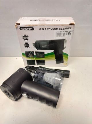 Aspirador de mano compacto y versátil, modelo GZ000011. Diseñado para la recolección de polvo y con función de iluminación. Incluye conexión USB. Ref 1251202036024