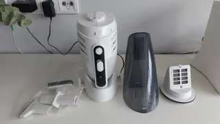 Aspiradora de mano inalámbrica, ideal para una limpieza rápida y cómoda. - Diseño ergonómico. - Incluye varios accesorios. - Base de carga.
