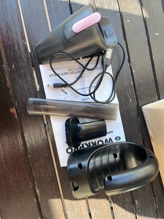 Aspirador de mano WORKPRO con accesorios. - Incluye boquilla con cepillo. - Incluye tubo alargador. - Cable de carga USB.