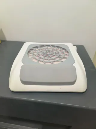 Extractor de polvo para uñas, en buen estado. - Recoge el polvo de uñas de forma eficaz. - Diseño compacto y fácil de usar. - Color blanco con detalles plateados.
