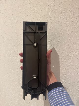 Soporte de pared oficial para aspiradoras Dyson V7. Se encuentra a estrenar. - Color gris oscuro. - Diseño compacto para montaje en pared. No incluye tornillos