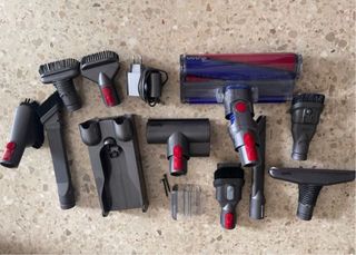 Se venden piezas y accesorios de aspiradora Dyson V10. La aspiradora se enciende i se para tiene 7 años puede ser batería no se , el cable cargador no va incluido , para quien sepa . - Tubo de extensión naranja.( 20) - Cabezal de cepillo principal.( 30 ) - Cepillo para suciedad incrustada.(30) - Cepillo mini motorizado.(30) - Cepillo suave.( 20) - Cepillo combinado.(20) - Cuerpo motor completo.(80) - Soporte de pared.(20) , Todo junto 120 , si te lo llevas todo se puede negociar un poco .