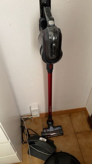 Aspirador escoba Taurus Crossback en color rojo y negro. - Diseño ligero y ergonómico. 45 min autonomía. Dos velocidades. Tiene luz. Perfectamente limpio como se ve en las fotos. Se guarda fácil, de pie, en cualquier rincón. La bateria se extrae para cargarla donde quieras. Incluye anclaje para la pared por si lo quieres fijar, aún en su embalaje porque nunca lo usé.