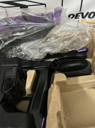 La aspiradora tiene la batería descargada y no enciende.Se vende para repuestos. Aspirador tipo escoba Taurus HS-2900 en color negro y morado. Incluye varios accesorios para facilitar la limpieza. - Tubo de extensión. - Cepillo para tapicerías. - Boquilla estrecha. - Cargador. - Soporte de pared. G087234