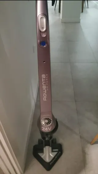 Aspiradora escoba Rowenta Air Force 360. Vendo porque se han roto un par de cosas que se pueden sustituir llevandolo a un punto Rowenta o comprándolos por internet. Nosotros preferimos cambiarla por eso vendo a precio simbólico. Funciona pero se ha roto el cargador, como podéis ver en la foto tiene fiso y el tubo largo.