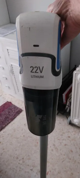 Aspiradora escoba en buen estado, ideal para la limpieza del hogar. Su diseño ligero facilita su manejo. - Color principal: azul y negro. - Incluye accesorios. - Depósito de polvo.