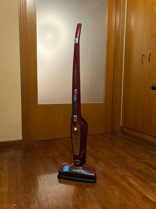 Aspiradora vertical Hoover H-FREE 100 en color rojo. Diseño ligero y ergonómico. Tipo escoba, se usa sin cable. Incluye cepillo motorizado y cargador. Depósito extraíble.. Muy poco uso (ver fotos). Funciona perfectamente.