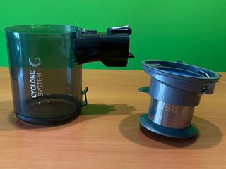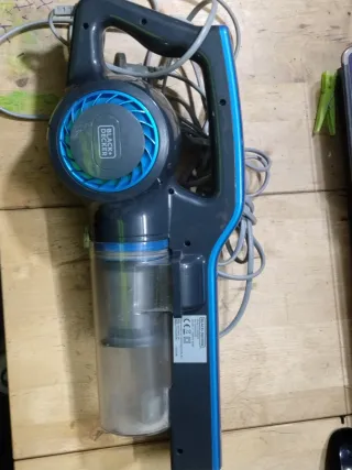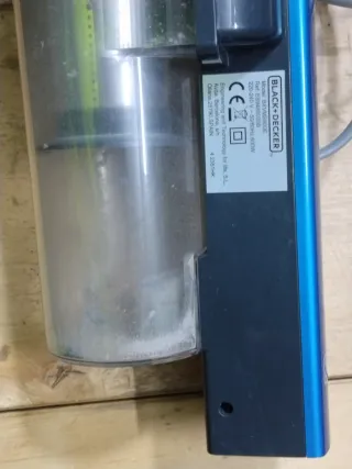 Motor de aspirador escoba de la marca Black+Decker. Diseñado con sistema ciclónico. - Color principal gris con detalles en azul. - Depósito transparente para el polvo.