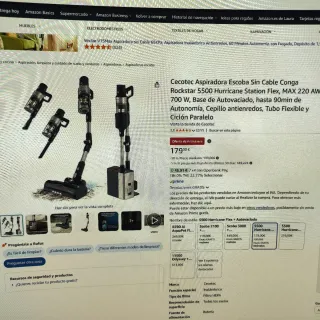 Aspirador escoba Cecotec Conga Rockstar 5500 Hurricane Station Flex. - Potencia de 700 W. - Succión de 220 AW. - Autonomía de 90 minutos. - Base de vaciado automático e higiénico. #Sin uso. #pvp en AMAZON 179 eu.